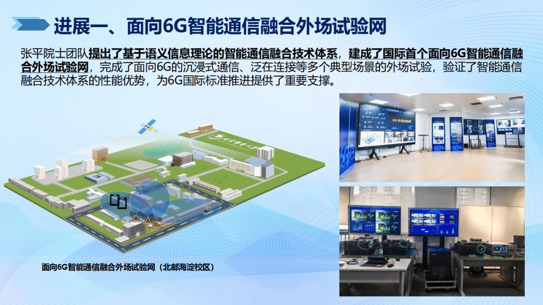 其中,面向6G智能通信融合外场试验网的成果尤为引人注目。该成果由北京邮电大学张平院士团队完成,提出了基于语义信息理论的智能通信融合技术体系,并建成了国际首个面向6G的智能通信融合外场试验网。这一成果不仅完成了多个典型场景的外场试验,验证了智能通信融合技术体系的性能优势,更为6G国际标准的推进提供了重要支撑。